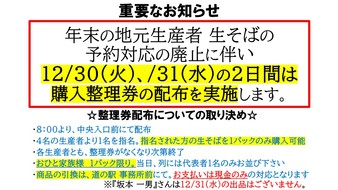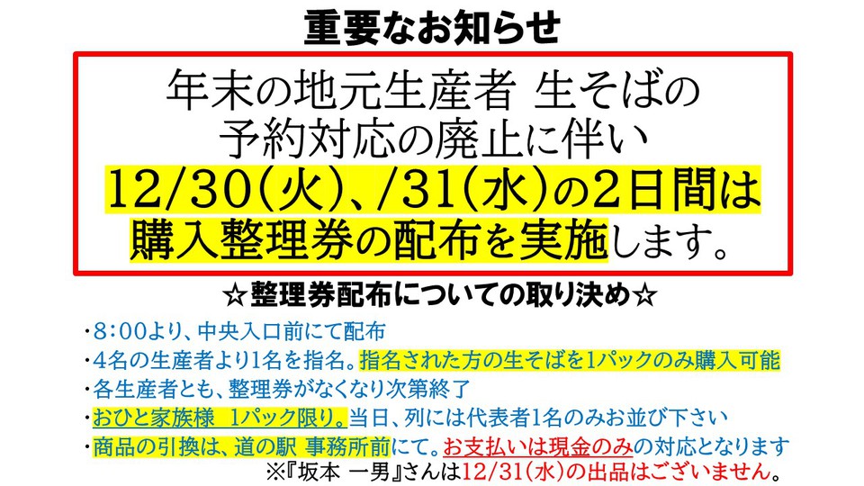 ※重要 年末 地元生産者の生そばの販売ルールのお知らせ